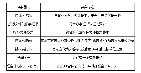 對招標文件要求的工期、質(zhì)量、投標保證金、履約擔保、投標有效期、暫定價、不可競爭費用等實質(zhì)性要求的響應性進行評審。