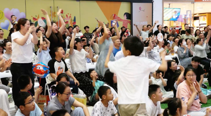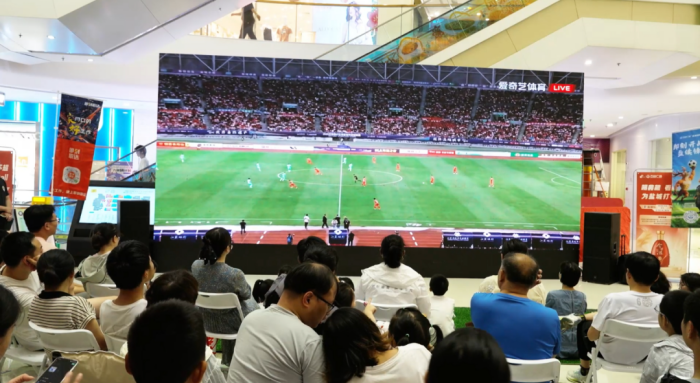 6月28日,鹽都萬達(dá)廣場的一樓中庭化作沸騰的綠茵戰(zhàn)場,300平方米的超清巨幕上清晰展現(xiàn)球員們的每一次拼搶、每一腳射門,現(xiàn)場座無虛席,球迷們目不轉(zhuǎn)睛緊盯賽況。隨著比賽進(jìn)入白熱化,助威聲、歡呼聲如浪潮翻涌,沉浸式觀賽體驗將賽場的熱血與激情完美復(fù)刻。