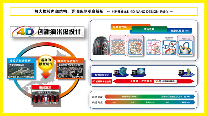 回顧?quán)嚨撈盏钠放瓢l(fā)展歷程,技術(shù)創(chuàng)新是出現(xiàn)頻率最高的關(guān)鍵詞。鄧祿普技術(shù)團(tuán)隊(duì)持續(xù)探索尖端科技,最新開(kāi)發(fā)“4D創(chuàng)新納米級(jí)設(shè)計(jì)”技術(shù)運(yùn)用大型放射光設(shè)備“Spring-8”、高強(qiáng)度質(zhì)子加速器“J-PARC”和超級(jí)計(jì)算機(jī)“京”,從納米級(jí)微觀領(lǐng)域真實(shí)再現(xiàn)橡膠分子結(jié)構(gòu)及運(yùn)動(dòng)形態(tài),使原材料的開(kāi)發(fā)精度和效率實(shí)現(xiàn)了質(zhì)的飛躍,全面提升了輪胎產(chǎn)品的低油耗性能、抓地力性能和耐磨耗性能。